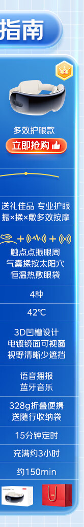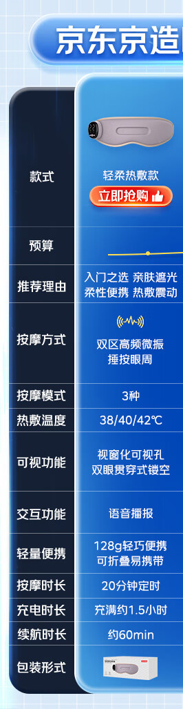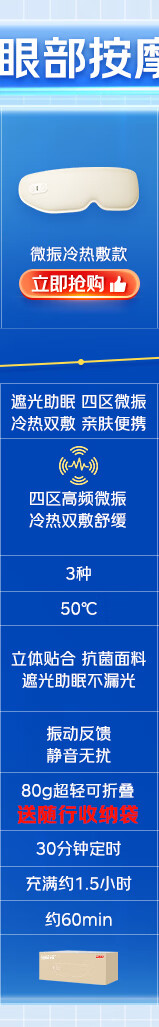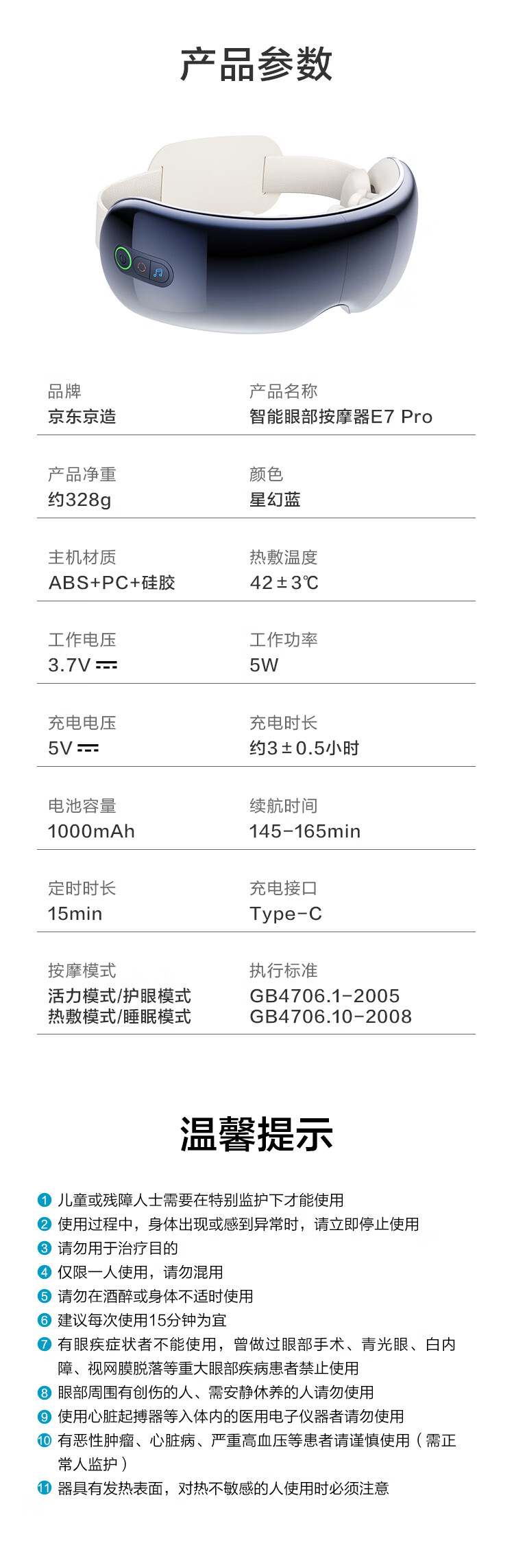 • 商品名称:京东京造智能眼部按摩器E7 Pro点振+气囊按摩可视热敷眼罩眼睛按摩仪眼部护眼仪生日礼物女新年礼物男 JZYB-E7 Pro/个