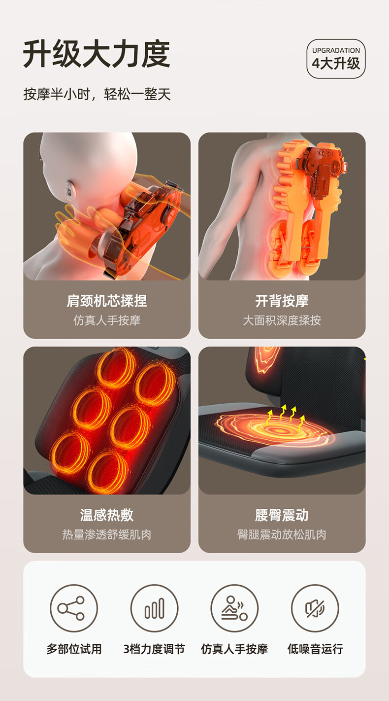 • 商品名称:慧选礼(HUI XUAN LI)父亲节礼物送爸爸全身腰背按摩靠垫老人老师长辈按摩椅家用肩颈揉捏按摩仪实用活动生日礼物 五位一体【尊享灰+车家两用】/个