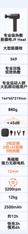 商品名称: 京东京造专业级热敷筋膜枪J9 Heat全身肌肉按摩器肩颈椎按摩仪竞赛级筋膜按摩器生日礼物女新年礼物男 JZJM-J9 Heat/把