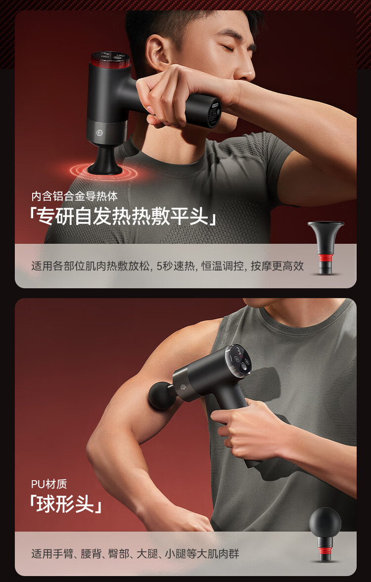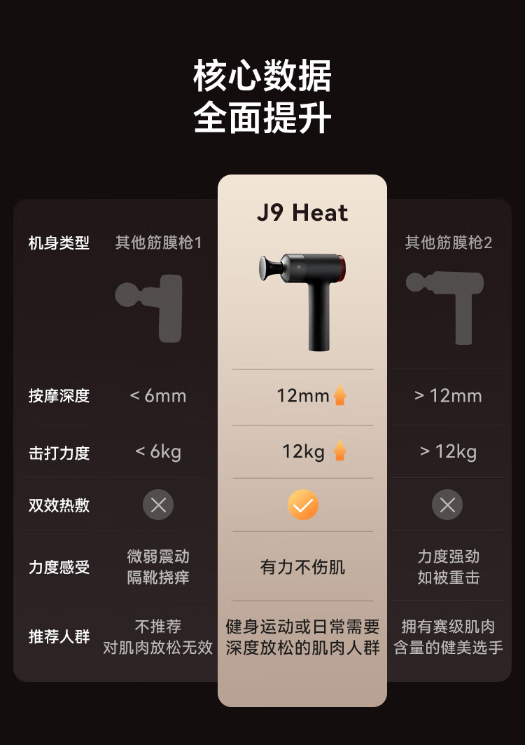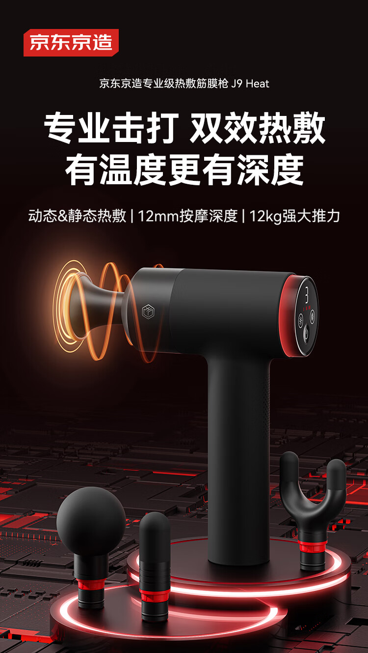 京东京造专业级热敷筋膜枪J9 Heat全身肌肉按摩器肩颈椎按摩仪竞赛级筋膜按摩器生日礼物女新年礼物男 JZJM-J9 Heat/把