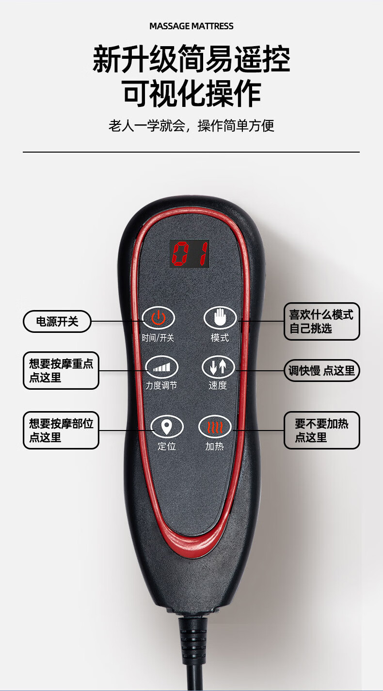 包装清单: 按摩床垫*1、电源线*1、说明书*1