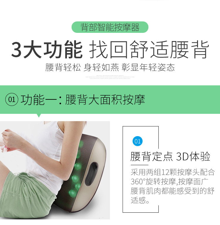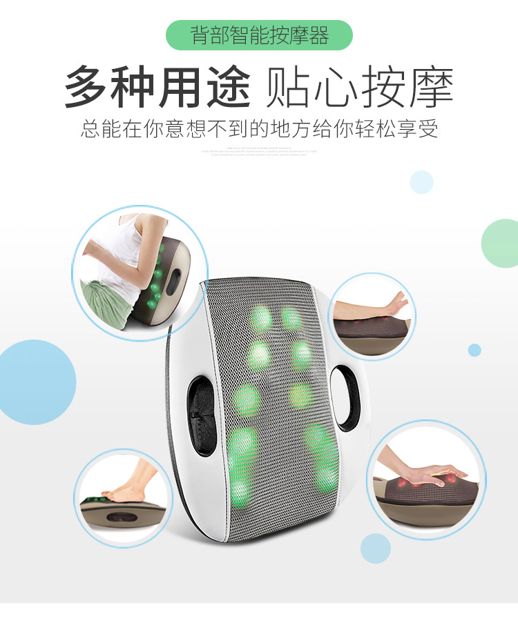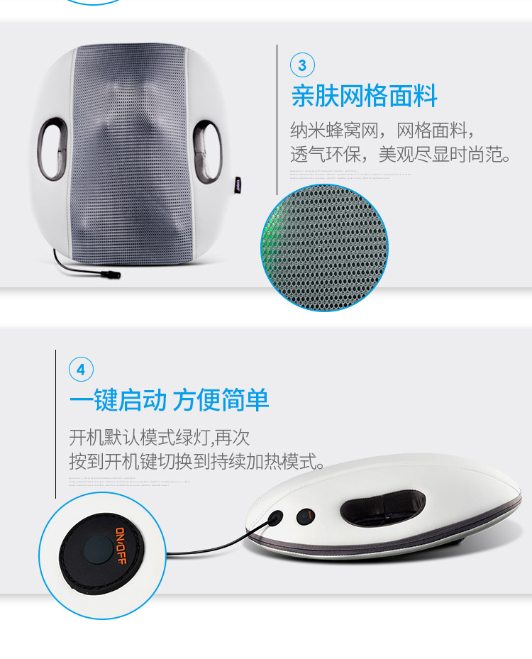 包装清单: 按摩靠垫*1、电源线*1、说明书*1、保修卡*1、合格证*1