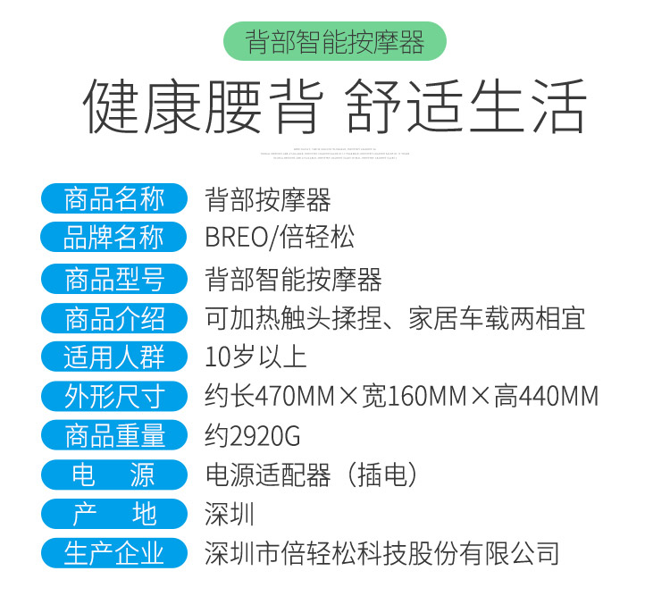 • 商品名称:倍轻松(breo)腰部按摩器BM-312按摩垫靠垫 背部按摩器按摩仪揉捏热敷 腰背按摩器 孙颖莎同款 实用生日礼物 BM-312/台