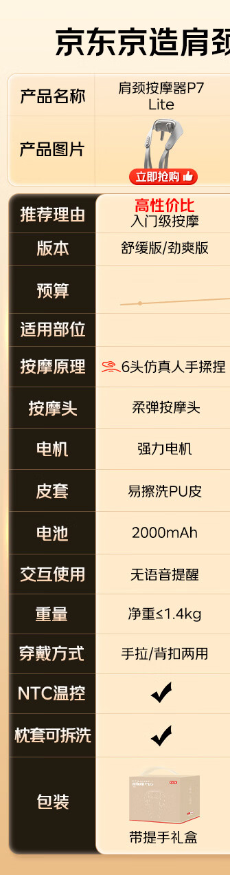 家用电器  > 个护健康  > 按摩器  >  京东京造  >  京东京造颈椎按摩器P7pro橙 斜方肌肩颈按摩器颈椎按摩仪肩颈腰部按摩仪肩部全身按摩生日礼物女新年礼物 JZJV-P7 pro/台