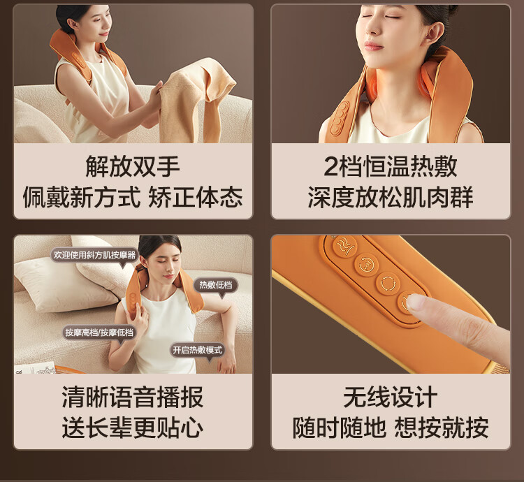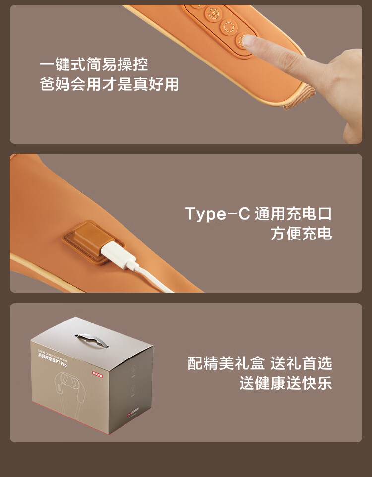 • 商品名称:京东京造颈椎按摩器P7pro橙 斜方肌肩颈按摩器颈椎按摩仪肩颈腰部按摩仪肩部全身按摩生日礼物女新年礼物 JZJV-P7 pro/台