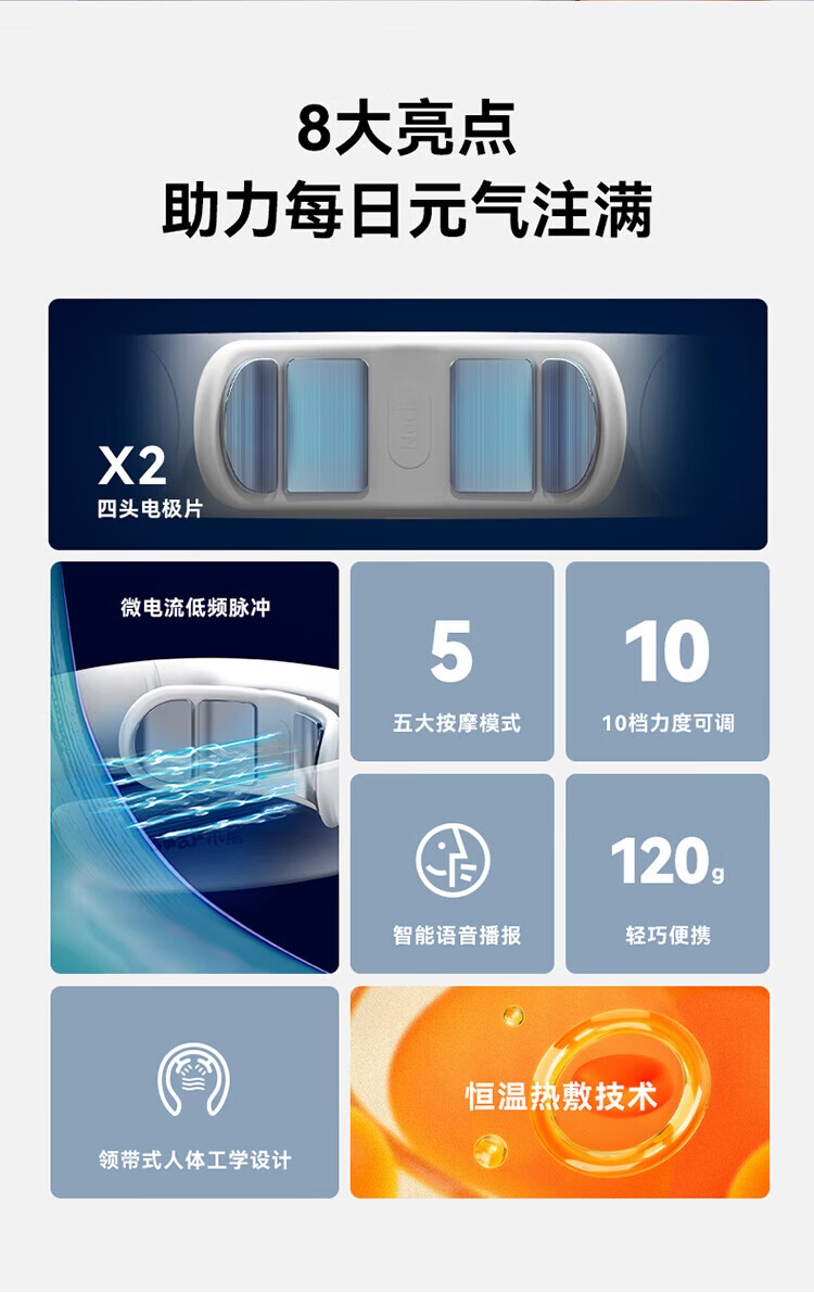 • 商品名称:小熊颈椎按摩器 颈部按摩仪 肩部颈部低频脉冲按摩仪 便携恒温热敷送男女生日七夕情人节礼物AMQ-F05H5 AMQ-F05H5/个