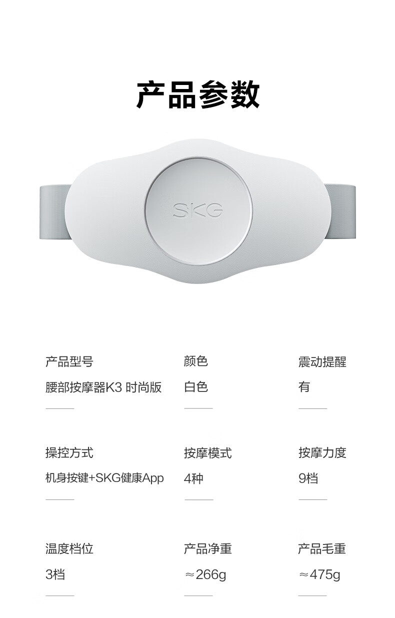 • 商品名称:SKG K3腰部按摩仪时尚款 白色 K3 时尚款/个