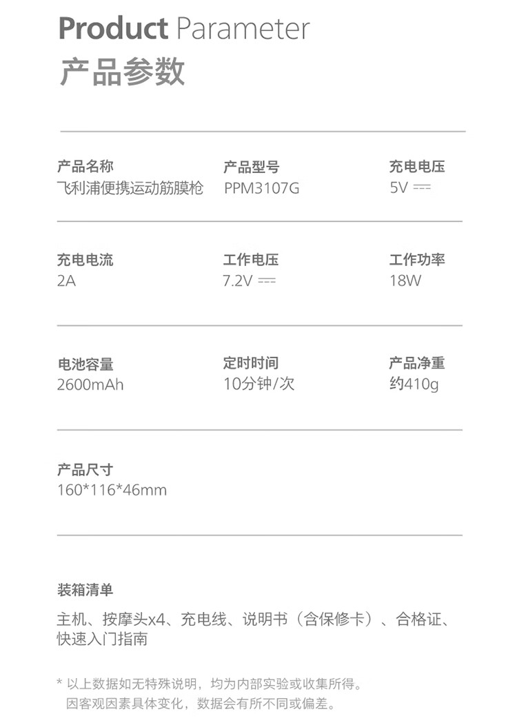 • 商品名称:飞利浦(PHILIPS)筋膜枪小钢炮按摩仪专业级家用颈膜枪健身肌肉背腿部深层按摩器3107G 新年礼物男女友生日礼物 PPM3107G/台