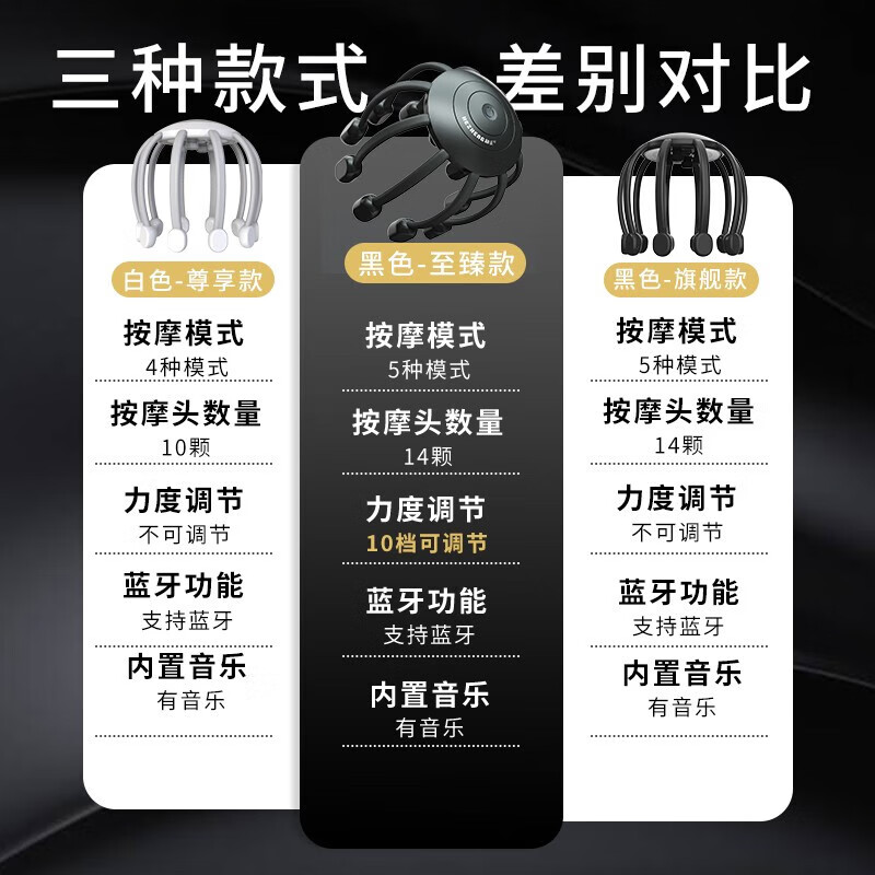 商品名称: 和正头部按摩器八爪鱼头皮按摩器 全自动经络疏通头疼电动指压按摩仪至臻款黑 至臻款黑/个