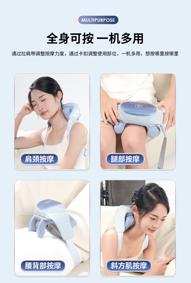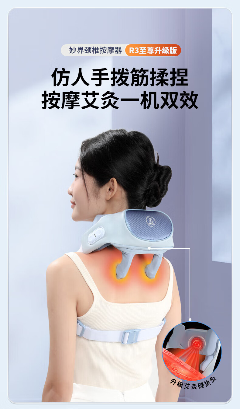 • 商品名称:妙界R3至尊升级版颈椎按摩器肩颈按摩仪按摩披肩热敷斜方肌肩腰腿背部按摩送长辈生日新年礼物男女 蓝 R3/盒