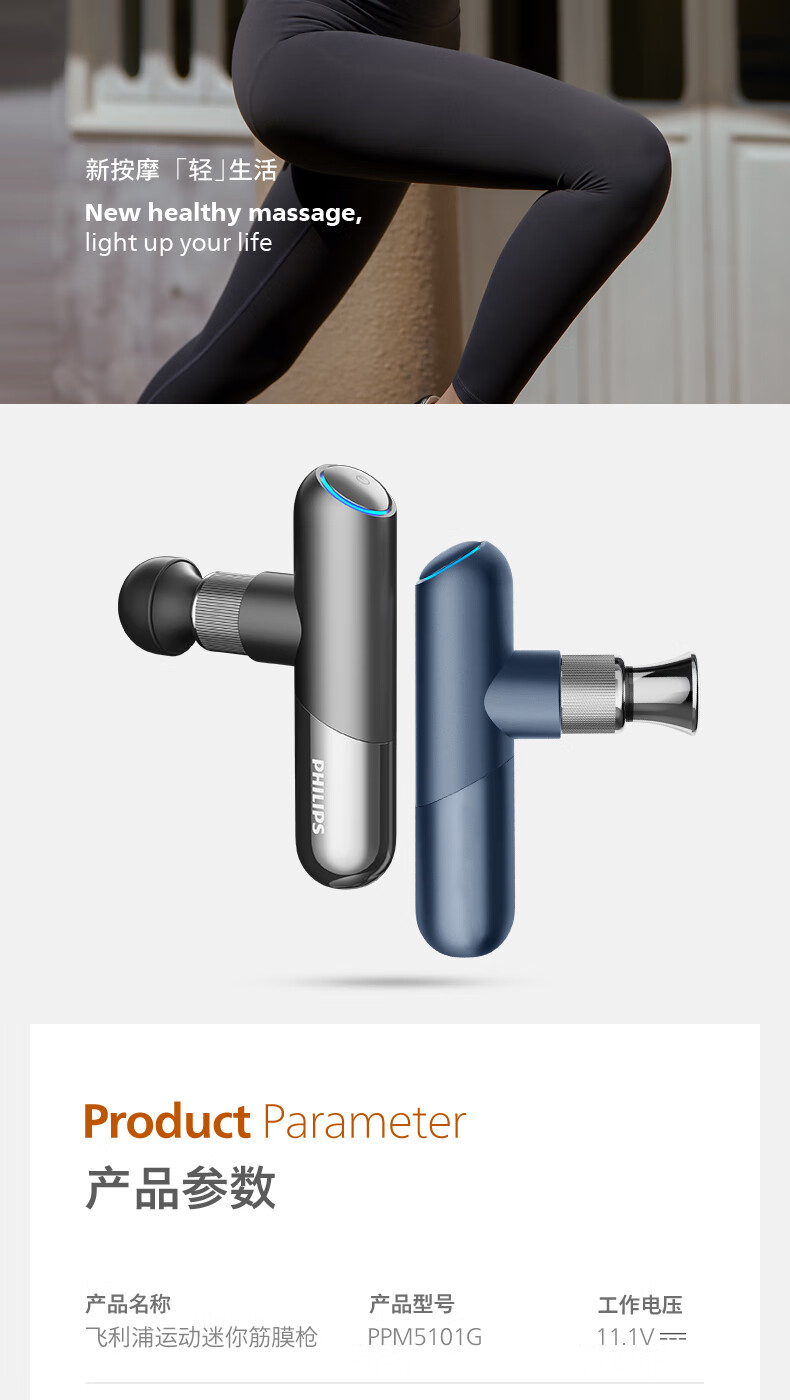 • 商品名称:飞利浦(PHILIPS)小金刚筋膜枪肌肉按摩器mini专业级健身运动全身筋膜深层按摩仪颈膜枪5101G男女友生日新年礼物 PPM5101G/个