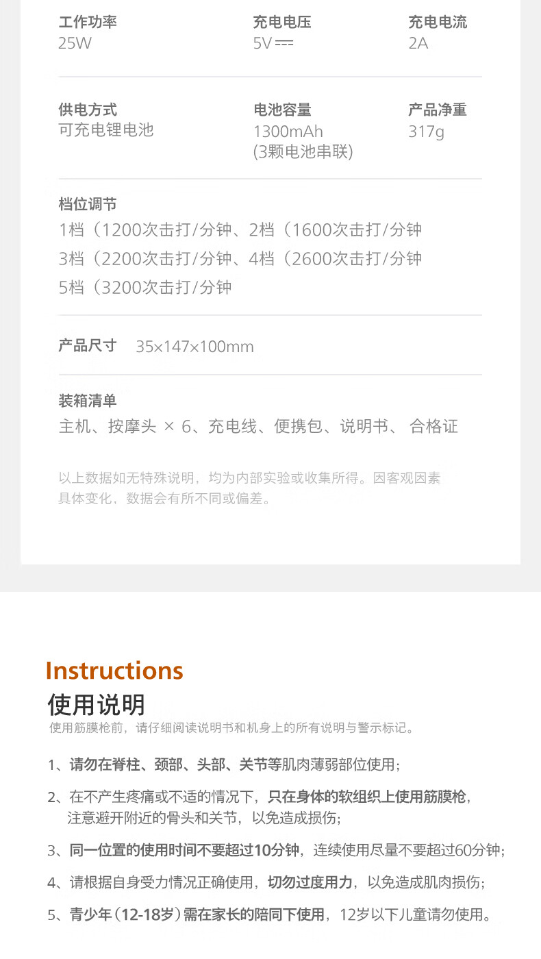 包装清单: 主机*1、便携包*1、按摩头*6、充电线*1、说明书*1、合格证*1