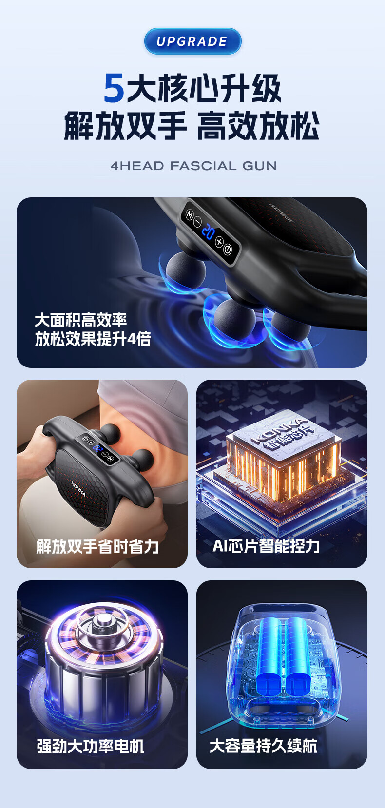 商品名称: 凯伦诗四头筋膜枪全自动多功能全身肌肉放松按摩 海绵小球头 G23S/个