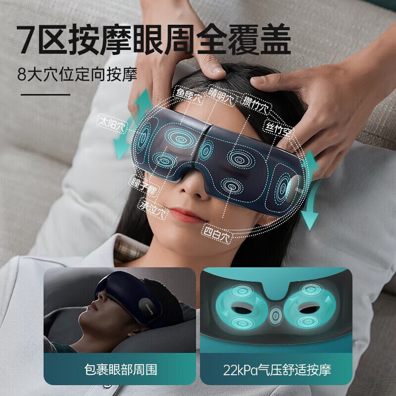 飞利浦(PHILIPS)眼部按摩仪护眼仪眼睛疲劳热敷眼罩成人学生按摩器送男女朋友生日礼物PPM5101E 气囊按摩眼罩 PPM5101E/个