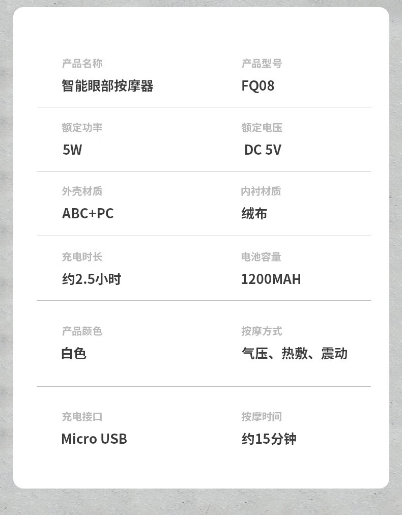 包装清单: 眼部按摩器*1、说明书、USB线*1;