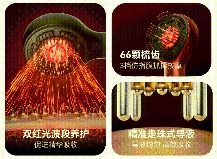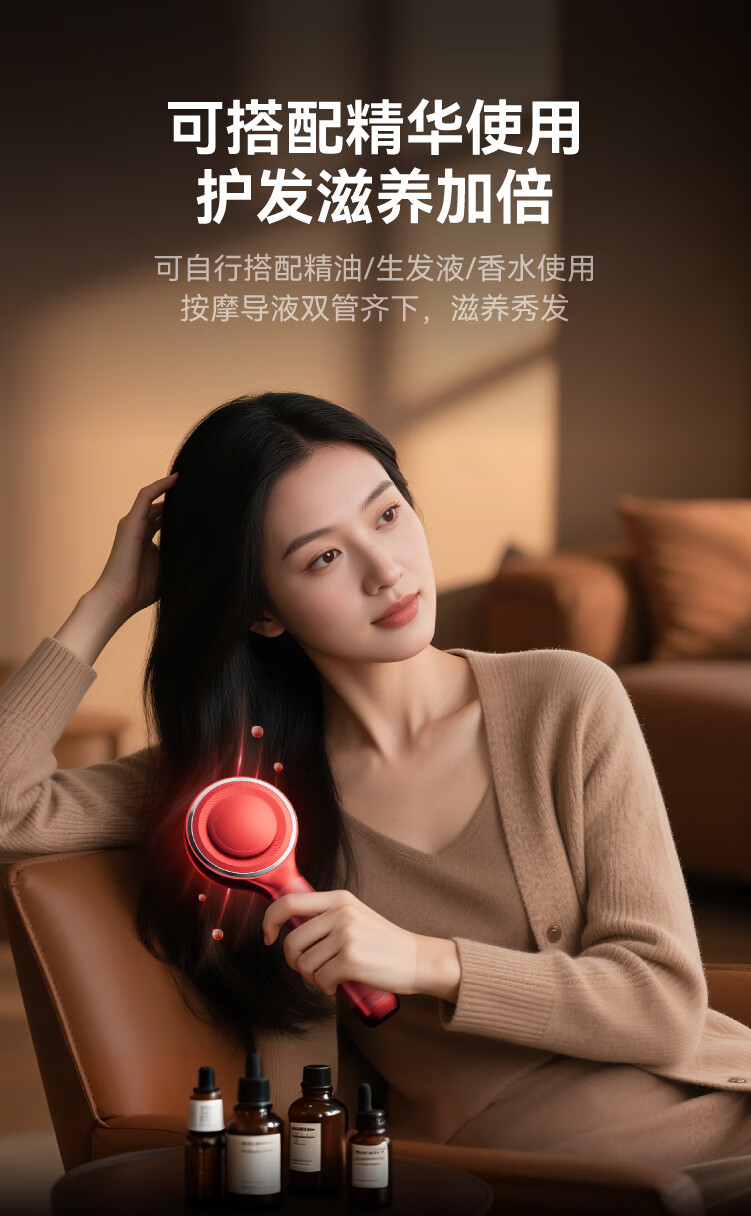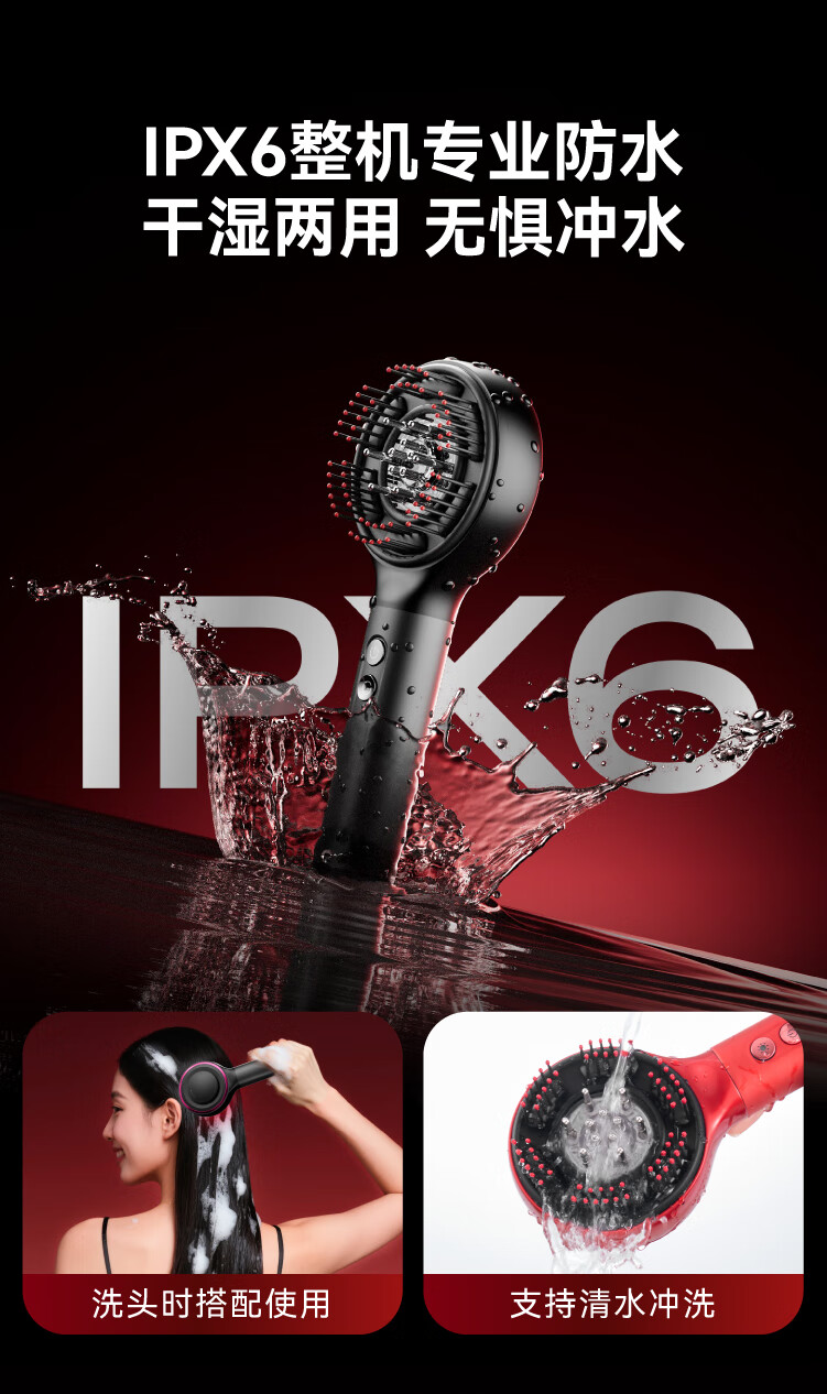 京东京造头部按摩器S1钛晶灰 头部按摩仪头皮红光养护温感导液头皮按摩梳经络刷男生生日礼物女新年礼物 JZTB-S1/台