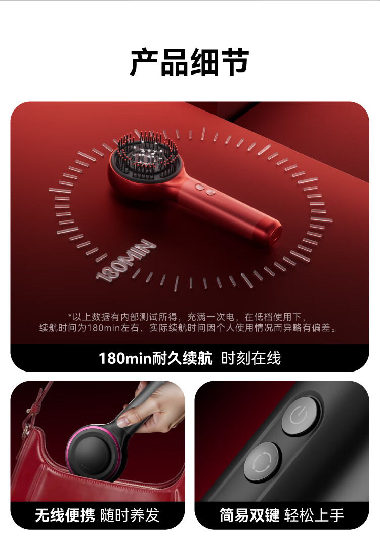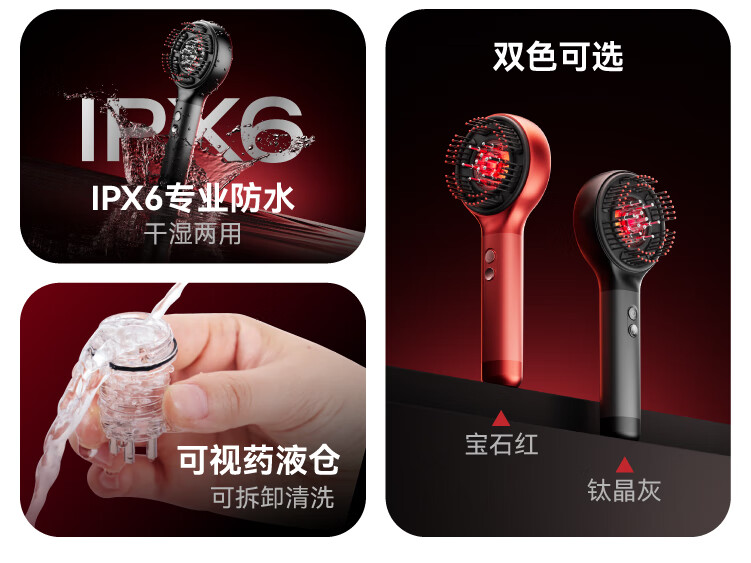 商品名称: 京东京造头部按摩器S1钛晶灰 头部按摩仪头皮红光养护温感导液头皮按摩梳经络刷男生生日礼物女新年礼物 JZTB-S1/台