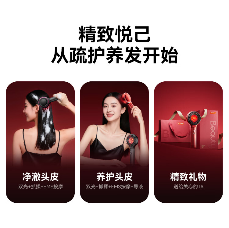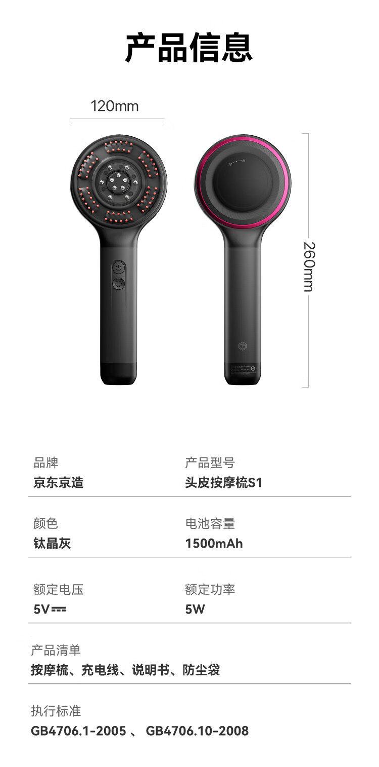 家用电器  > 个护健康  > 按摩器  >  京东京造  >  京东京造头部按摩器S1钛晶灰 头部按摩仪头皮红光养护温感导液头皮按摩梳经络刷男生生日礼物女新年礼物 JZTB-S1/台