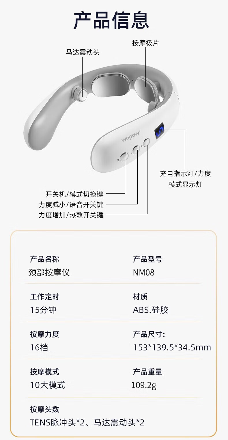 商品名称: 沃品颈部按摩仪NM08颜色随机 NM08/个