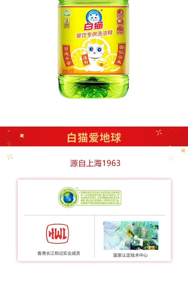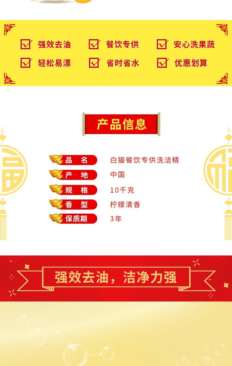 • 商品名称:白猫餐饮专供洗洁精10kg 10kg/瓶