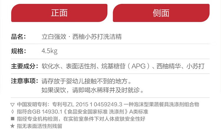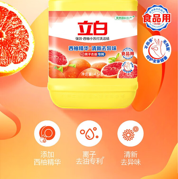 商品名称: 立白西柚洗洁精4.5kg*2瓶 4.5kg/瓶