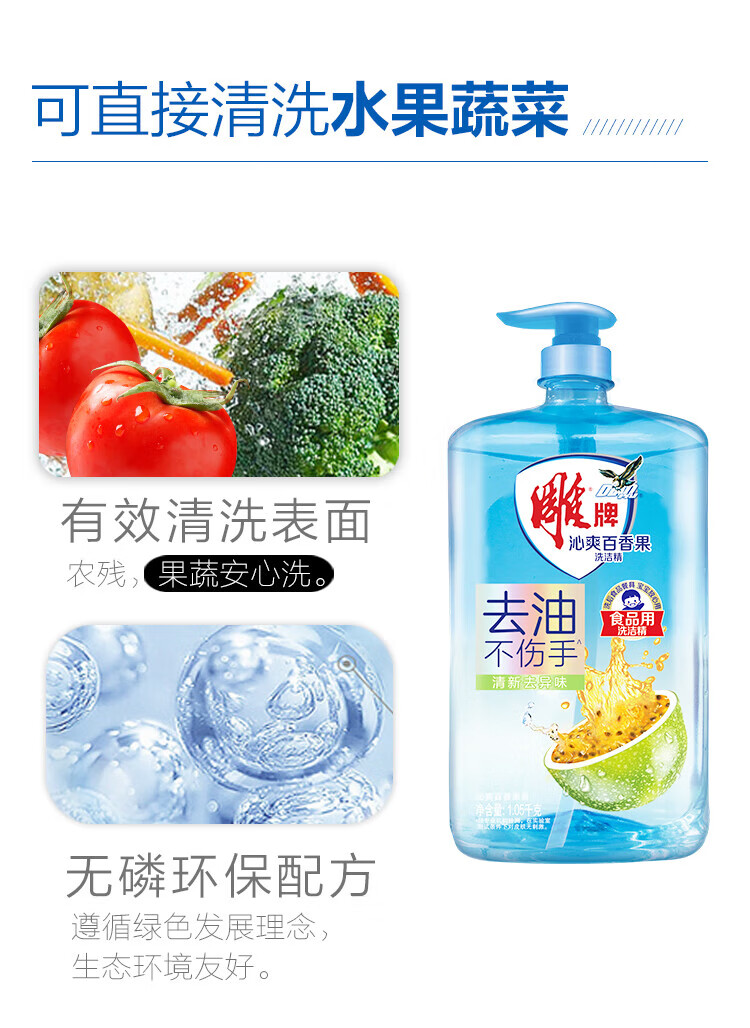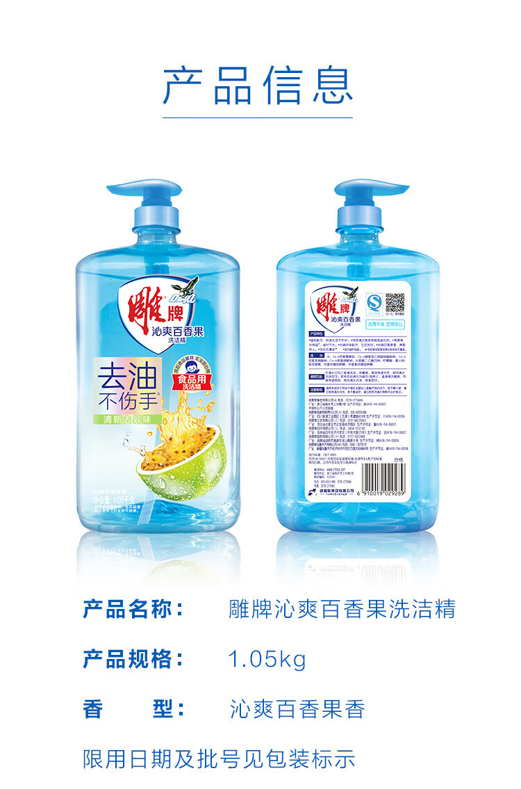 商品名称: 雕牌沁爽百香果洗洁精1.05kg 1.05kg/瓶