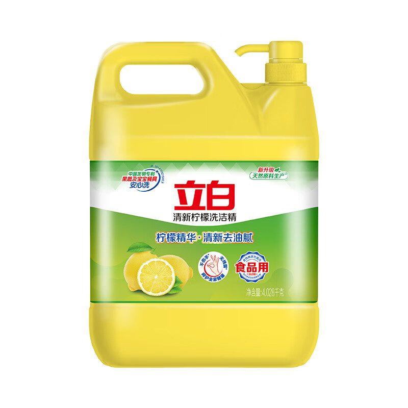 家庭清洁/纸品  > 家庭环境清洁  > 洗洁精  >  立白  >  立白洗洁精清新柠檬强效去油不伤手 A类食品用 餐馆酒店大桶装4.028kg 立白柠檬精4.028kg/瓶