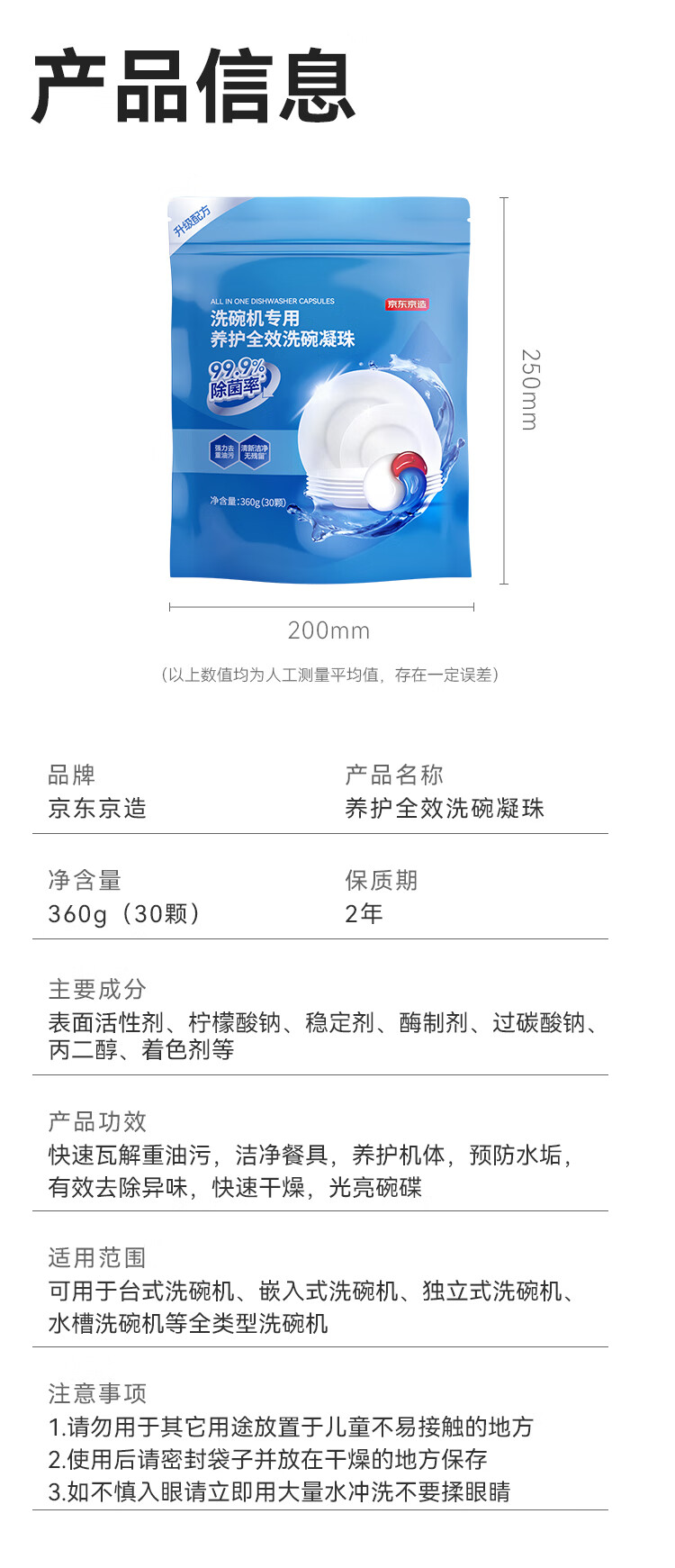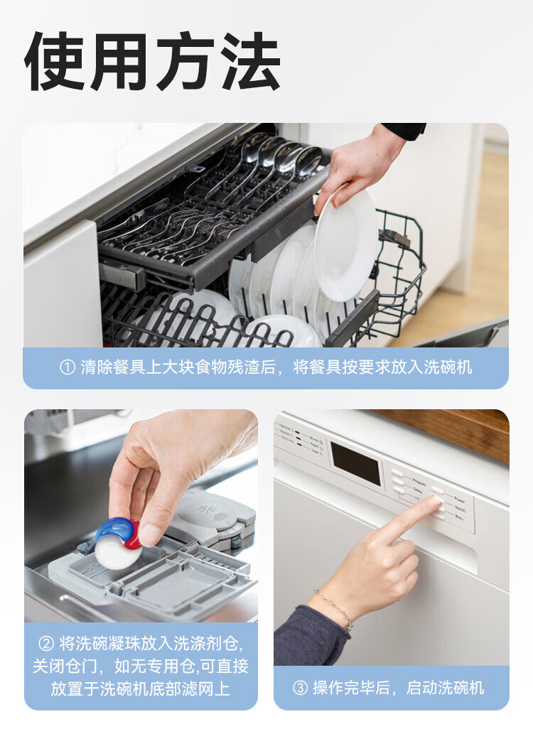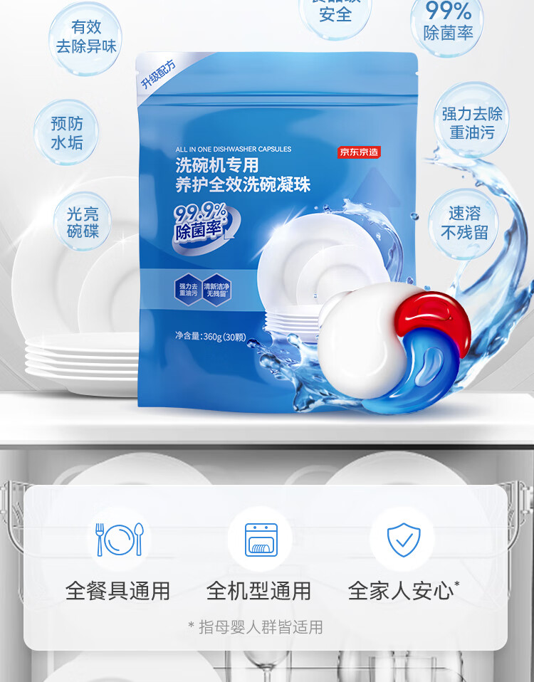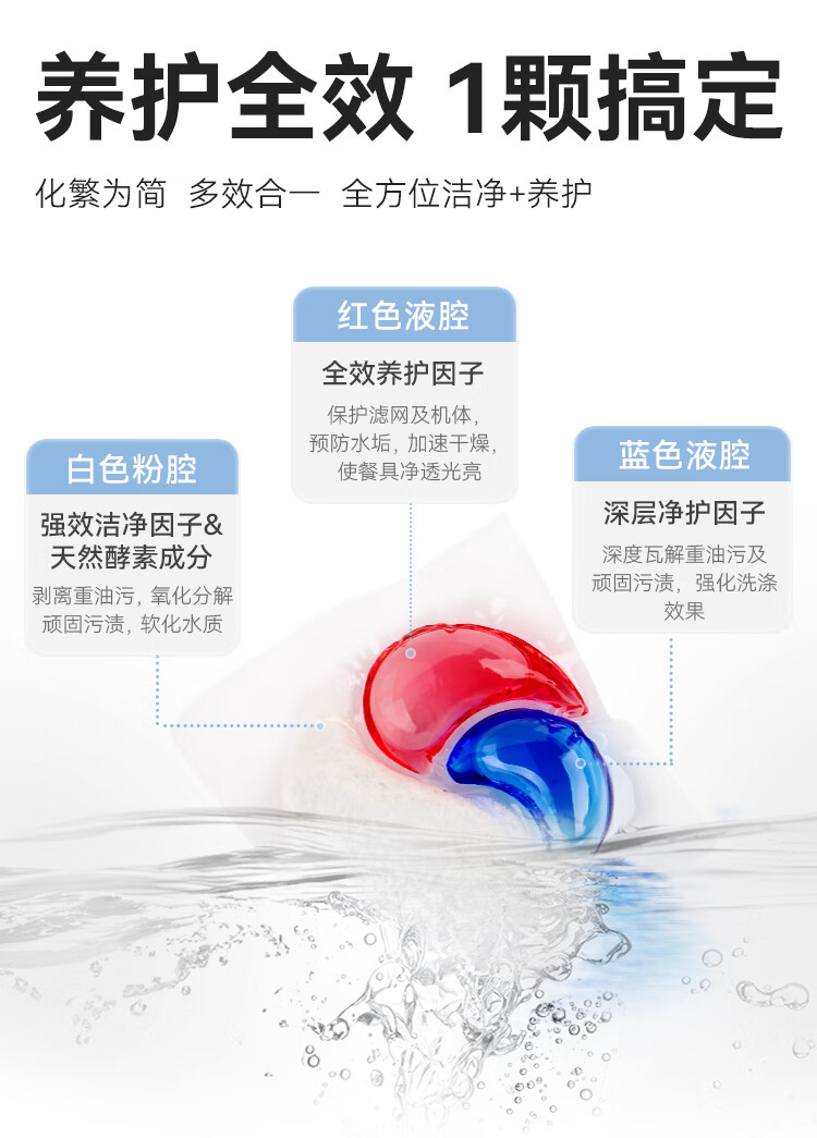 商品名称: 京东京造洗碗凝珠30颗 洗碗机专用洗涤剂清洁养护 浓缩洗洁精洗碗粉洗碗块 12g三腔/袋