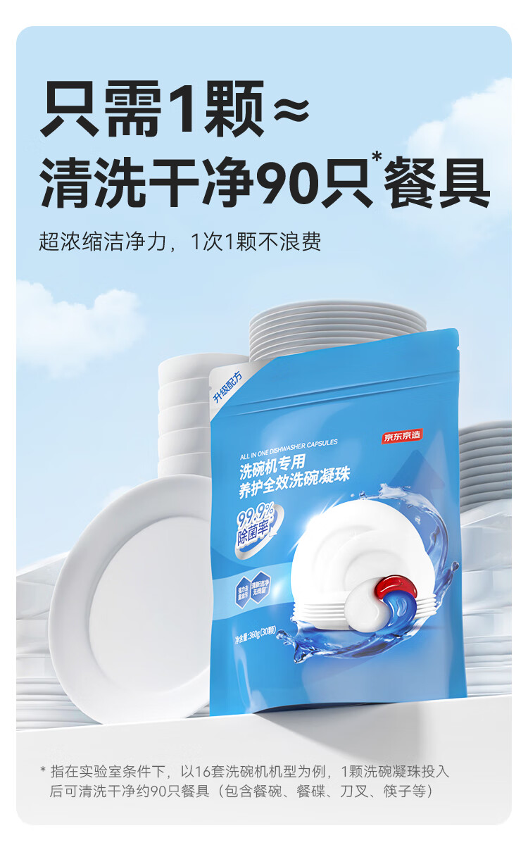 家庭清洁/纸品  > 家庭环境清洁  > 洗洁精  >  京东京造  >  京东京造洗碗凝珠30颗 洗碗机专用洗涤剂清洁养护 浓缩洗洁精洗碗粉洗碗块 12g三腔/袋