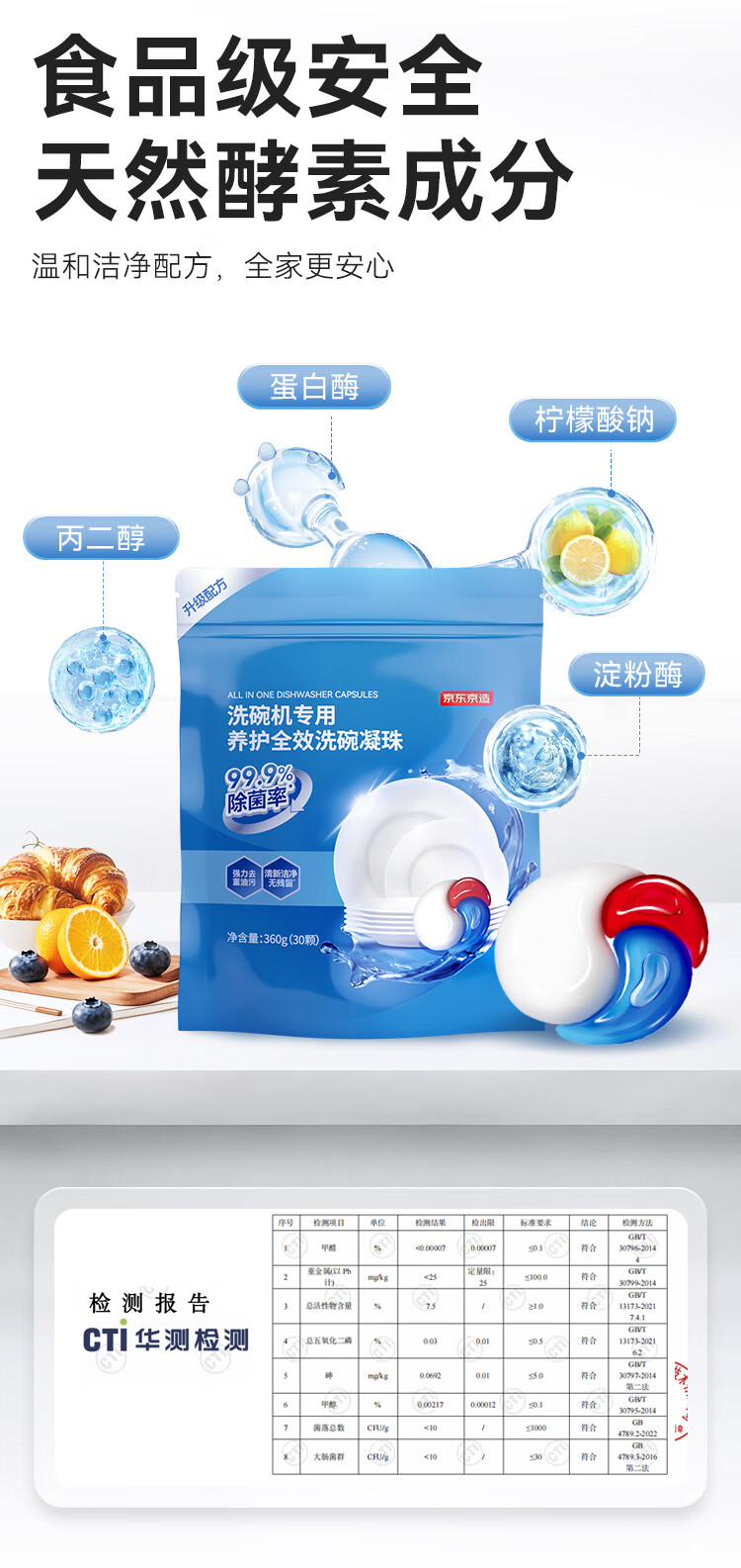 京东京造洗碗凝珠30颗 洗碗机专用洗涤剂清洁养护 浓缩洗洁精洗碗粉洗碗块 12g三腔/袋