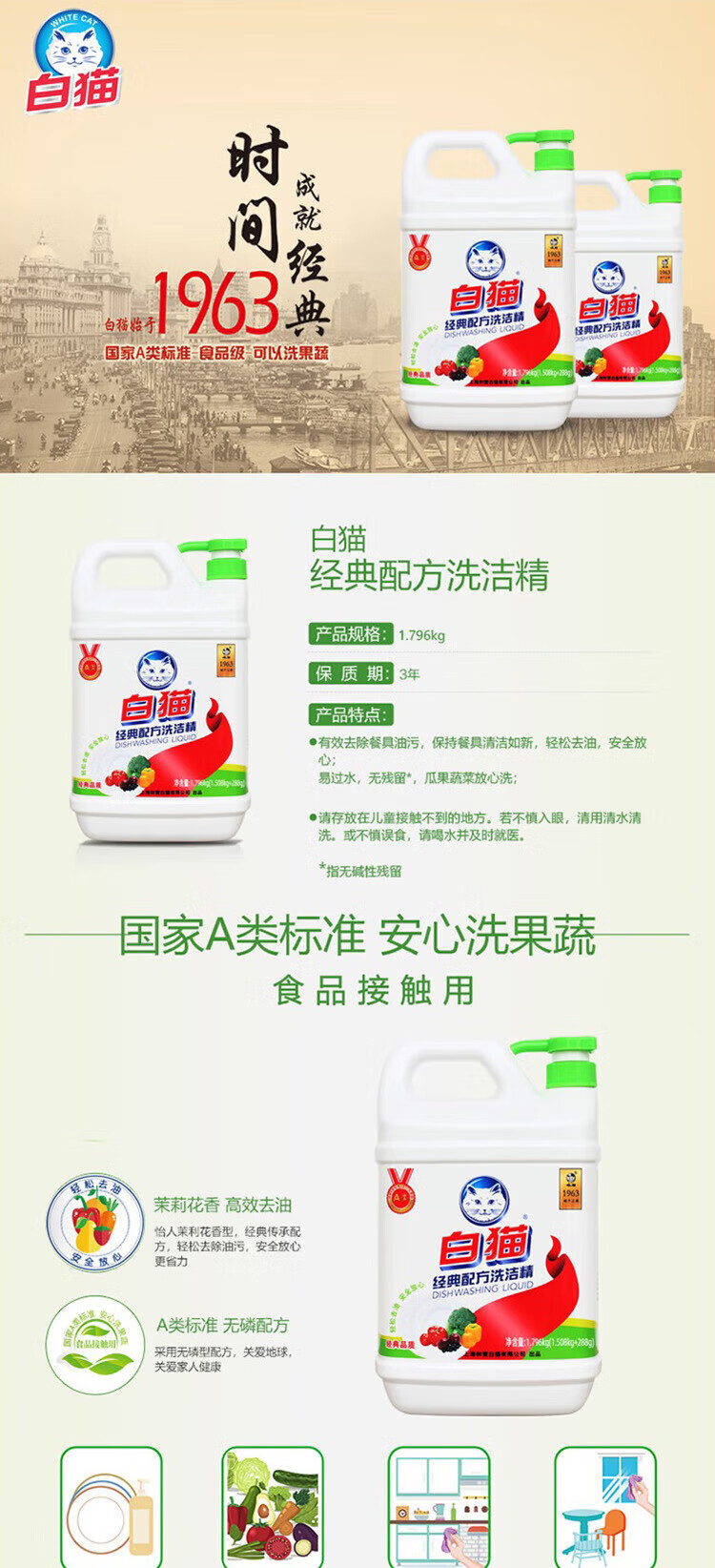 包装清单: 白猫经典配方洗洁精500g(氨基酸)