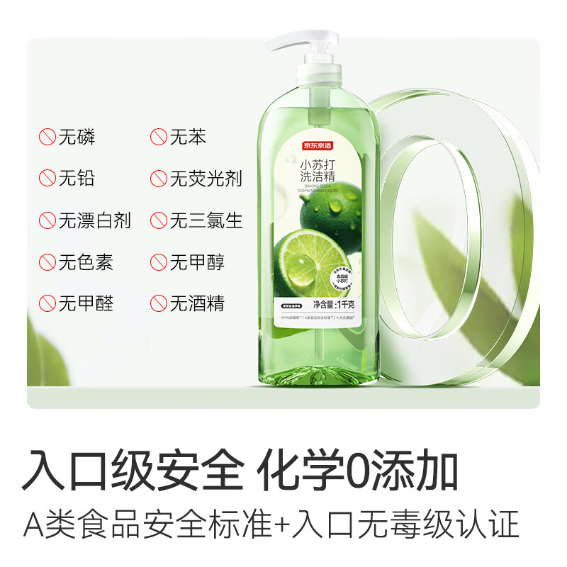 商品名称: 京东京造柠檬小苏打洗洁精1KG*3瓶 A类家用0添加食品级孕婴 去油污洗涤灵 0/箱