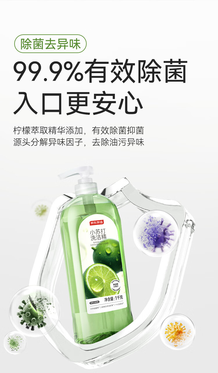 • 商品名称:京东京造柠檬小苏打洗洁精1KG*3瓶 A类家用0添加食品级孕婴 去油污洗涤灵 0/箱