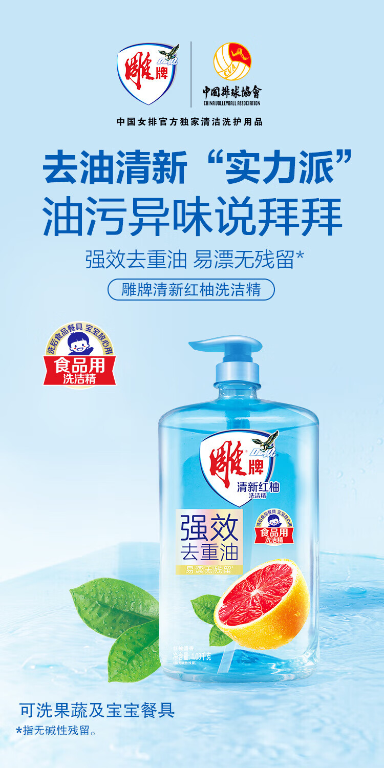 包装清单: 1.03kg雕牌清新红柚洗洁精(DZ)