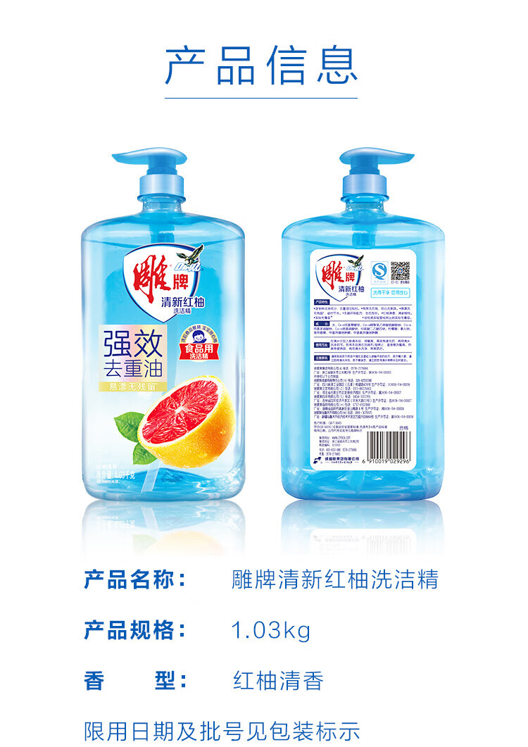 商品名称: 雕牌1.03kg清新红柚洗洁精(DZ) 1.03kg/瓶