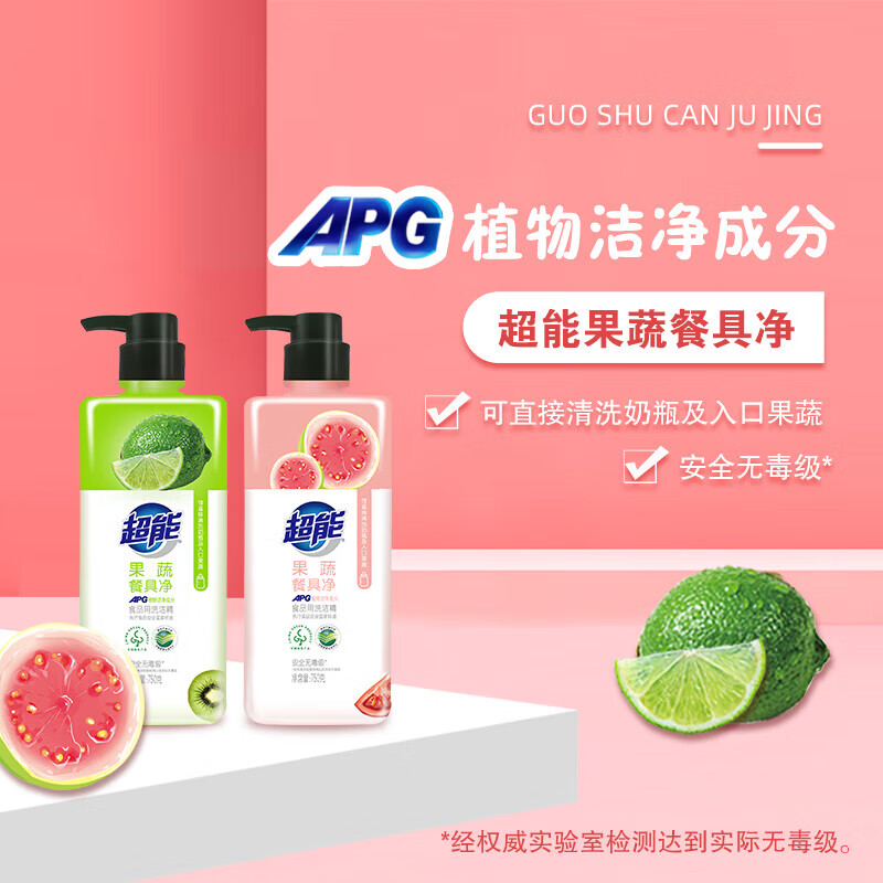 家庭清洁/纸品  > 家庭环境清洁  > 洗洁精  >  超能  >  超能新品APG果蔬餐具净洗洁精750g(香型随机) 750g/瓶