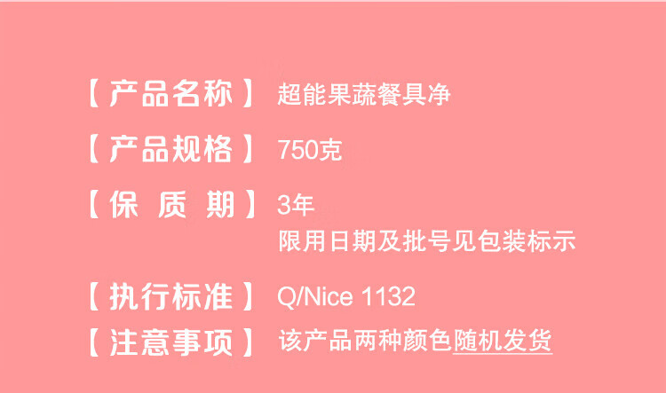 包装清单: 超能新品APG果蔬餐具净洗洁精750g(香型随机)