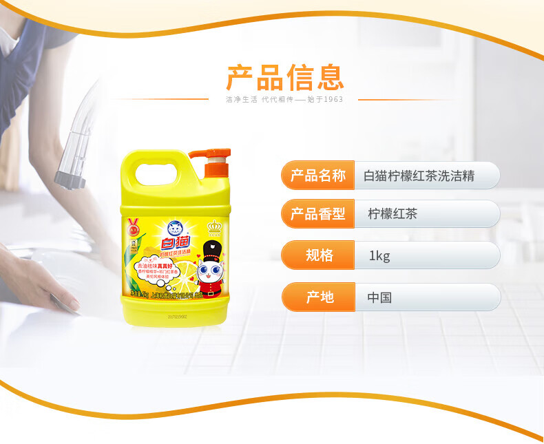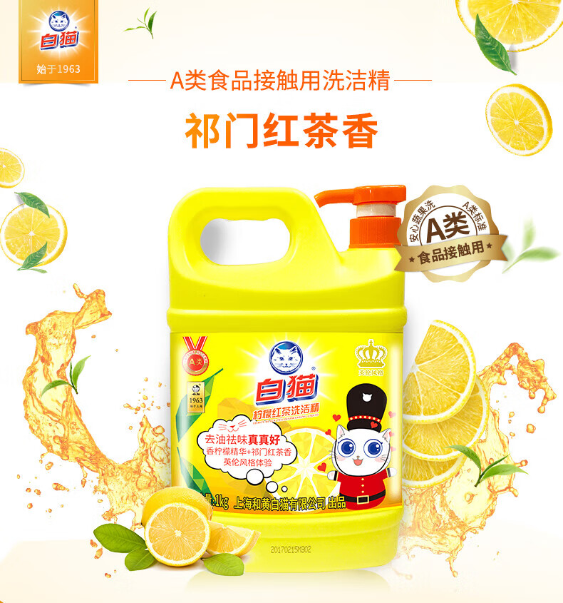 包装清单: 白猫柠檬红茶洗洁精1.128kg(1.001千克+127克)