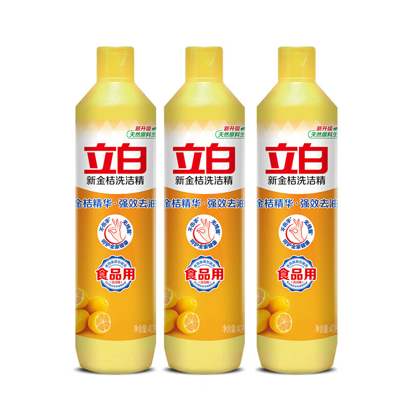 家庭清洁/纸品  > 家庭环境清洁  > 洗洁精  >  立白  >  立白 新金桔洗洁精408g*3瓶 去农残 食品用 除味去油 洗洁精【408g*3】/瓶