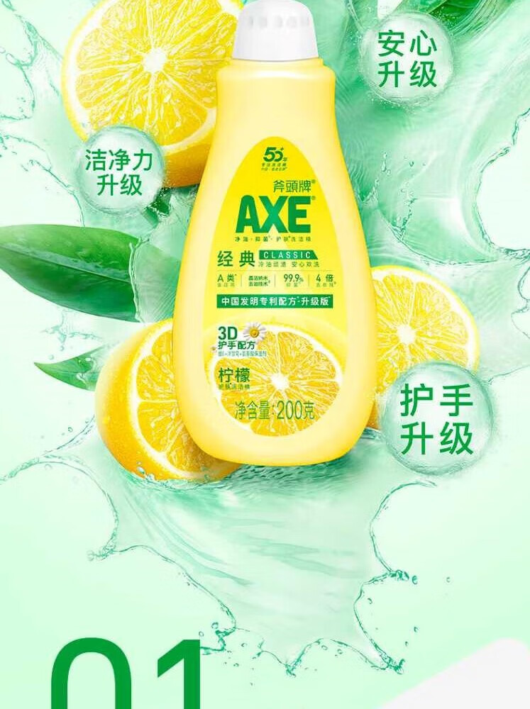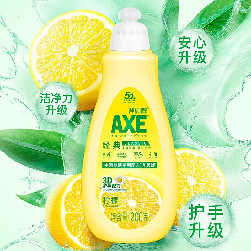 • 商品名称:斧头AXE洗洁精200g 柠檬小瓶装去油可洗果蔬 柠檬香洗洁精*2 AXE洗洁精西柚200g*2/瓶