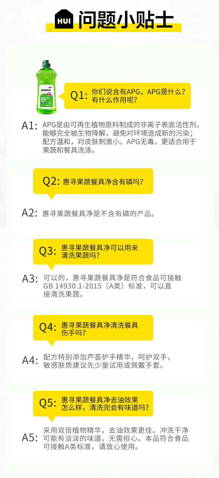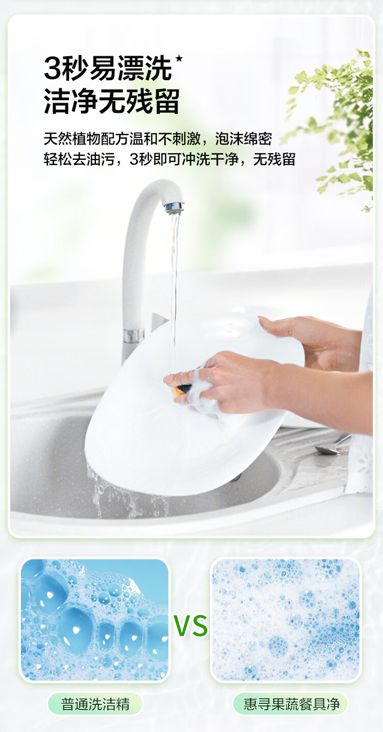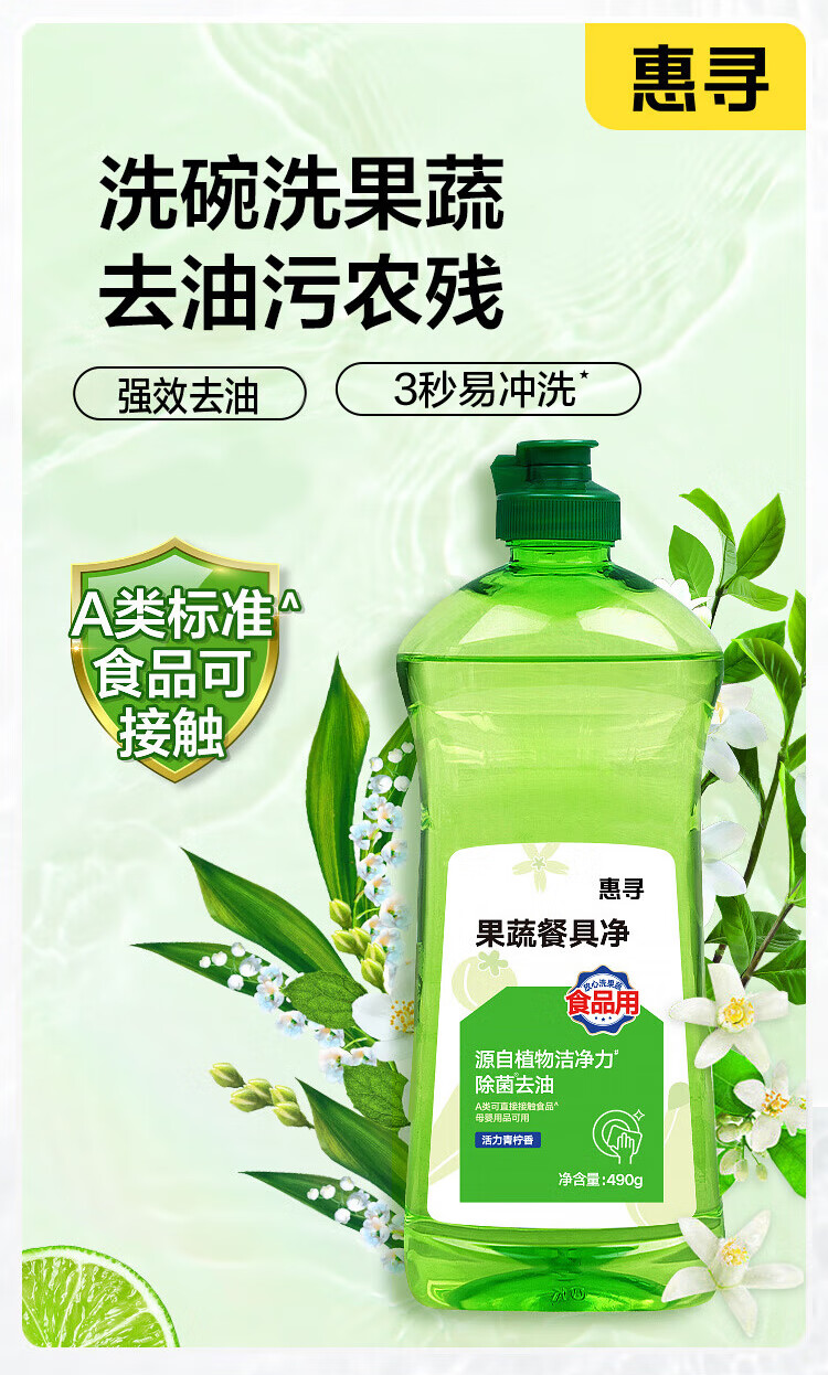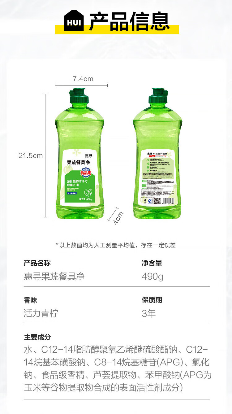 商品名称: 惠寻 果蔬餐具净洗洁精 清新洁净除菌去油 490g 490g/瓶
