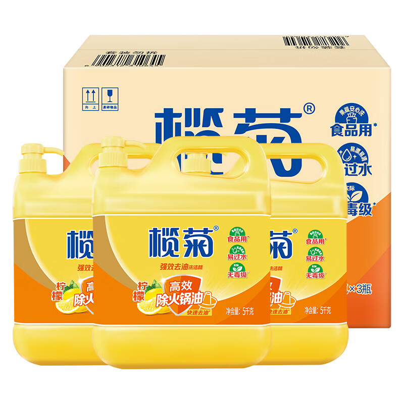 商品名称: 榄菊洗洁精大桶5kg*3瓶(整箱销售)菊之语食品用级别餐具果蔬清洗剂 榄菊菊之语洗洁精5kg*3瓶/箱