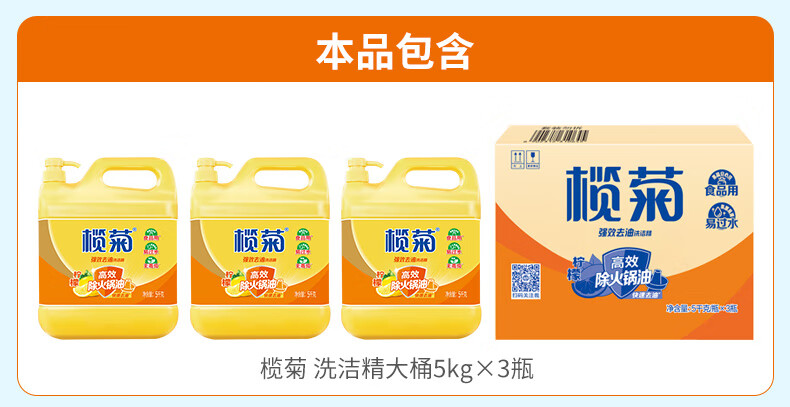包装清单: 榄菊菊之语洗洁精5kg*3瓶