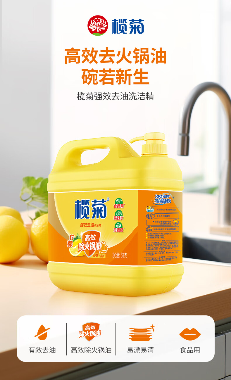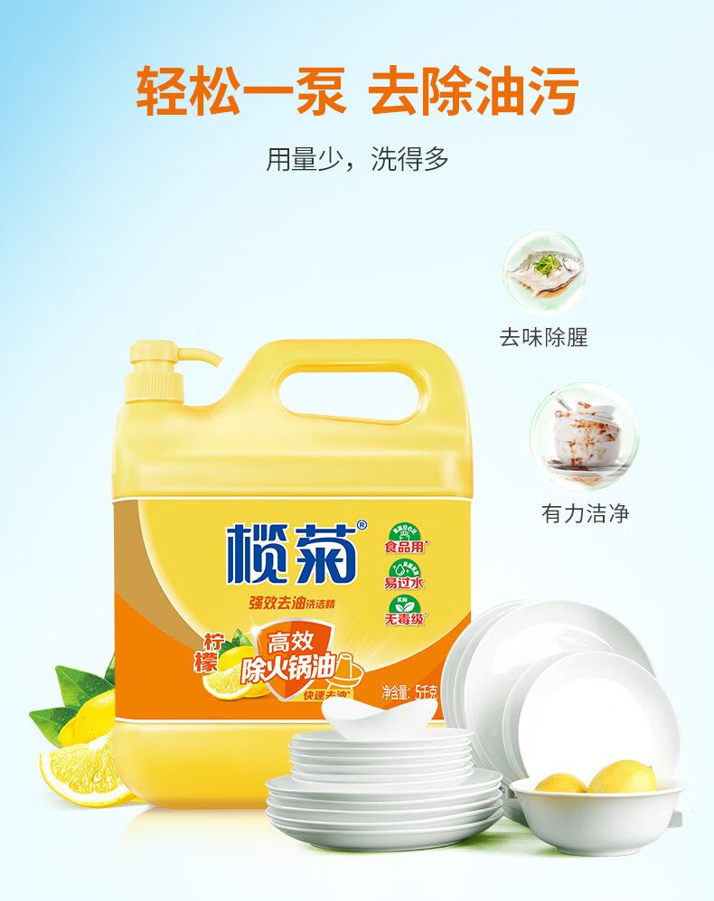 • 商品名称:榄菊洗洁精大桶5kg*3瓶(整箱销售)菊之语食品用级别餐具果蔬清洗剂 榄菊菊之语洗洁精5kg*3瓶/箱