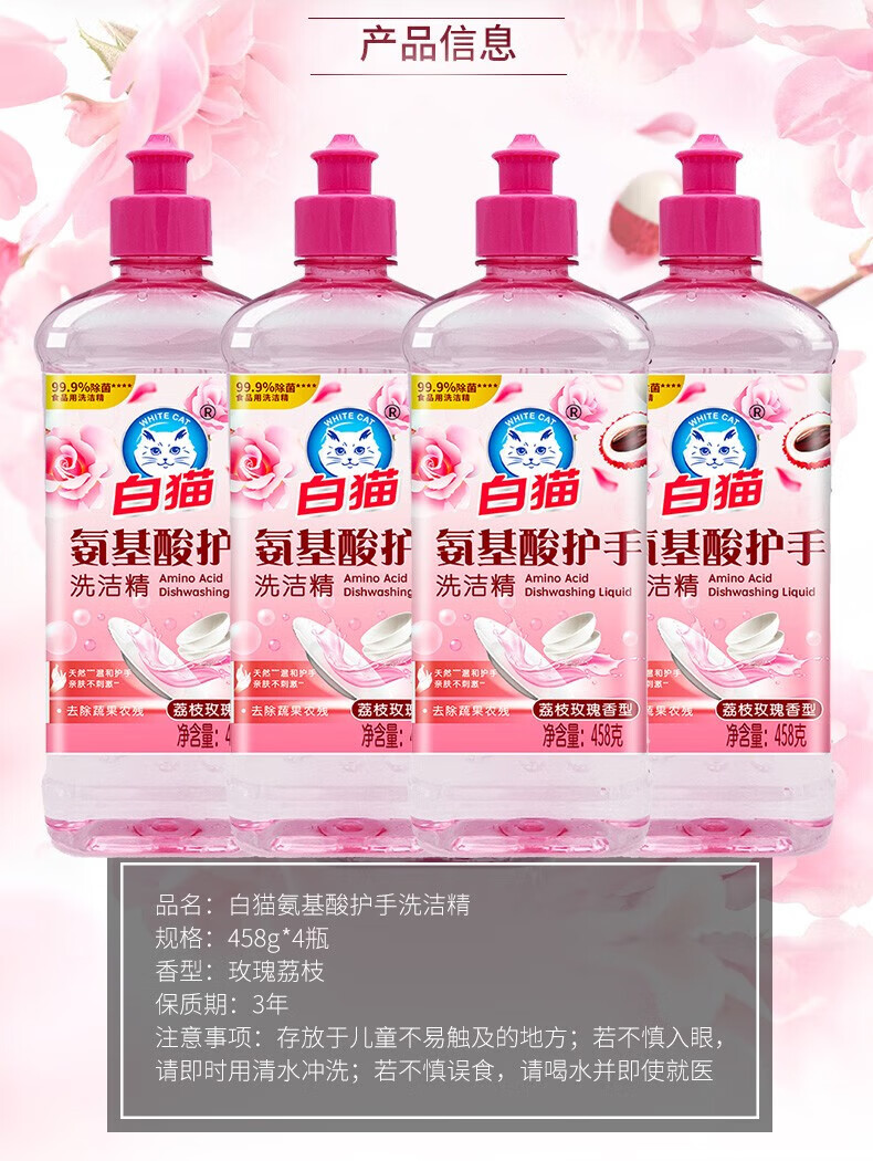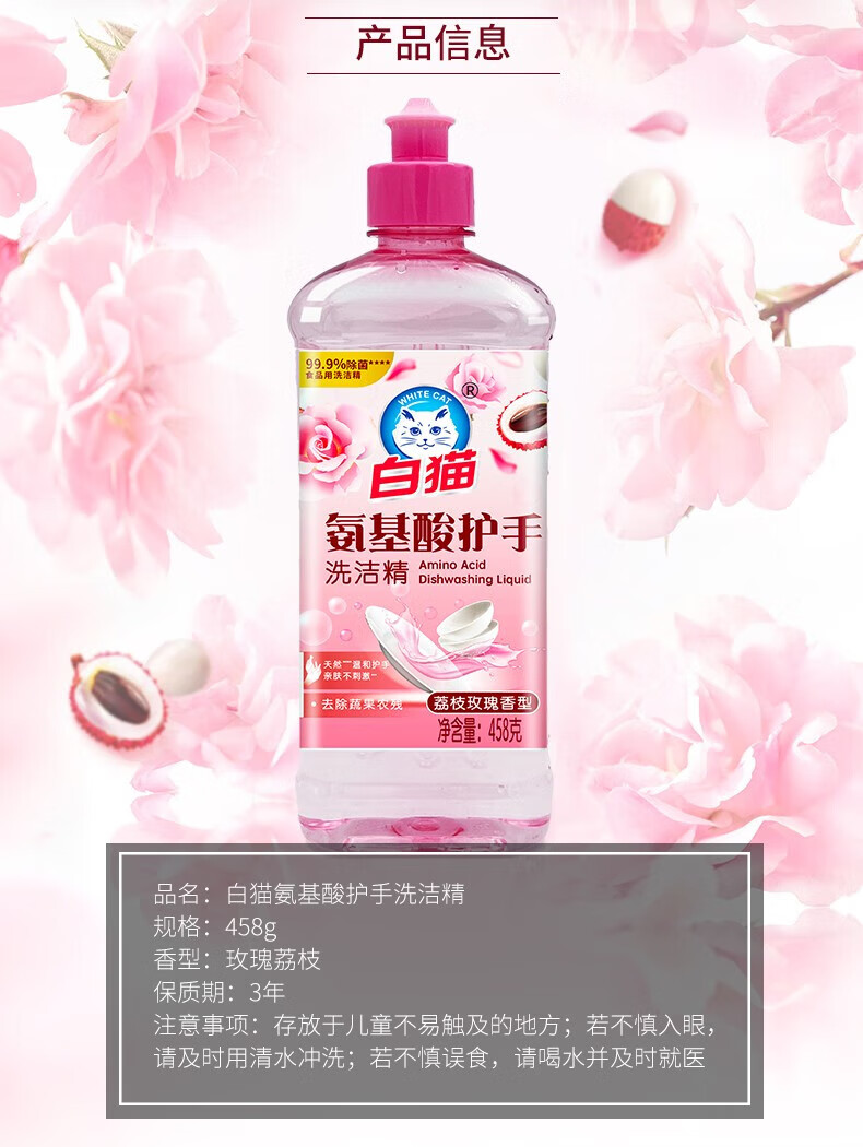 商品名称: 白猫氨基酸护手洗洁精458克 458g/瓶