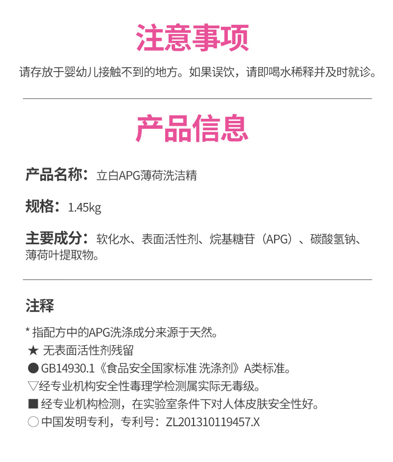 包装清单: 爆款立白APG薄荷洗洁精1450克/瓶