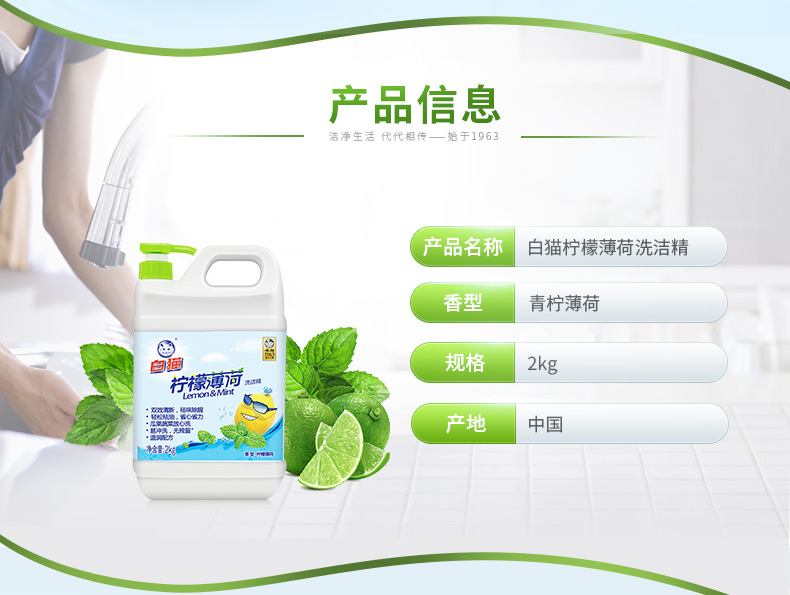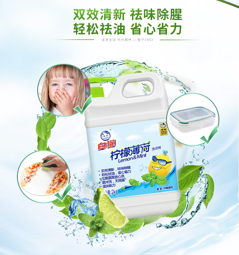 • 商品名称:白猫 柠檬薄荷洗洁精2kg A类食品用祛油除腥祛味青柠薄荷香 洗洁精 柠檬薄荷洗洁精2kg/瓶