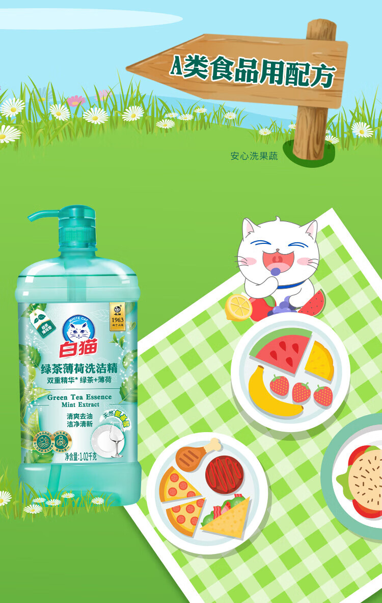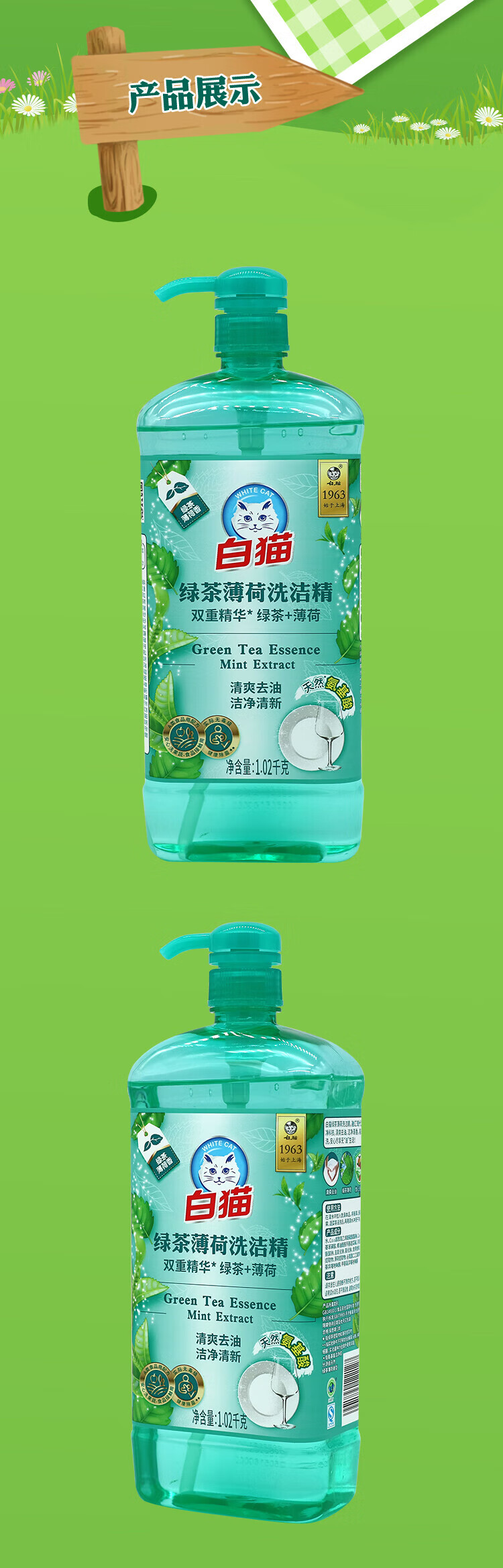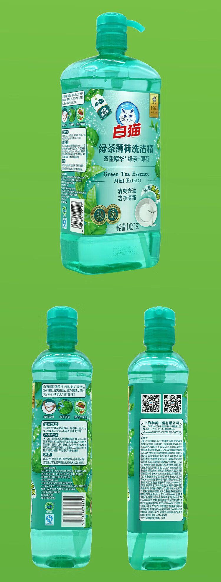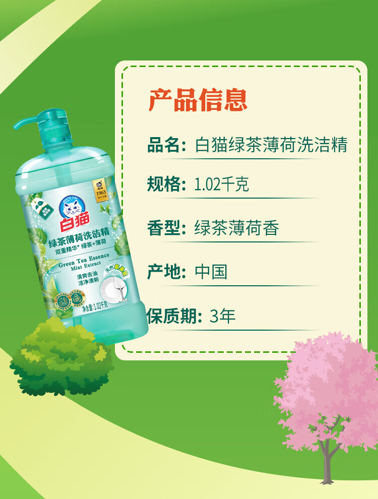 商品名称: 白猫绿茶薄荷洗洁精1.02kg 1.02kg/瓶