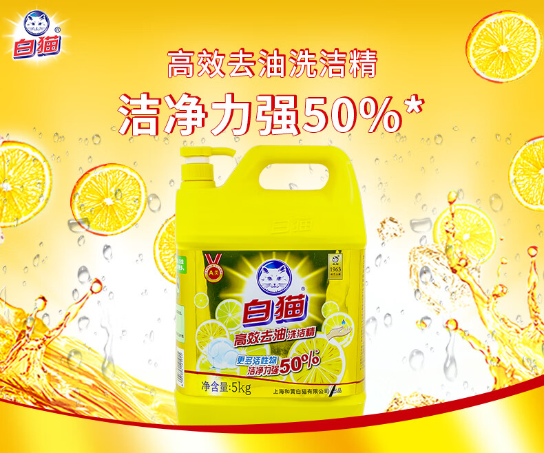 商品名称: 白猫 高效去油洗洁精5kg A类含更多去油因子轻松去油易冲洗大桶洗洁精 洗洁精/瓶