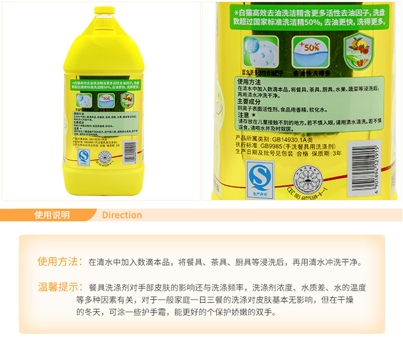 包装清单: 白猫 高效去油洗洁精5kg*1